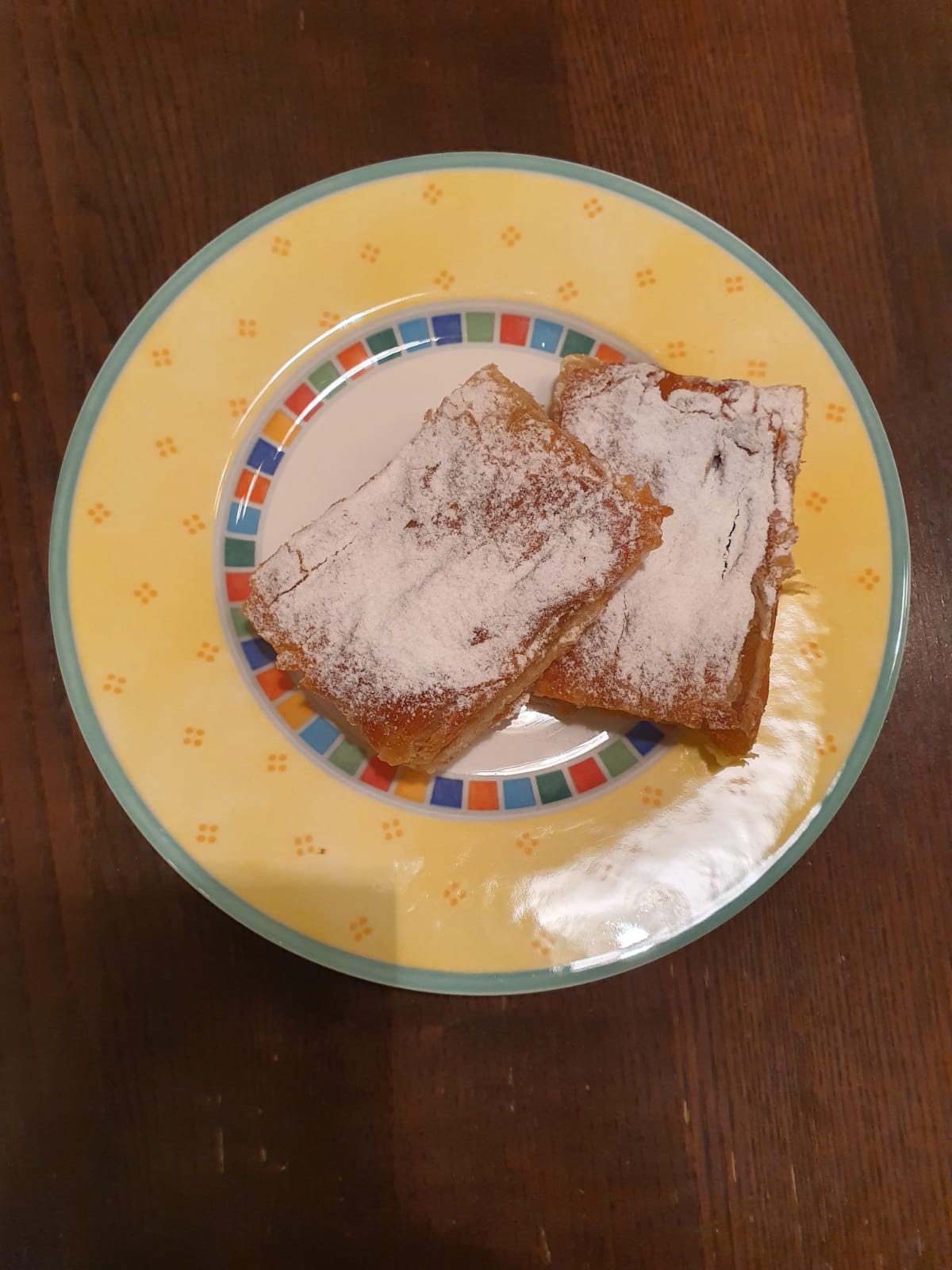 Das war das klassische Rezept. Ich benutze Filo-Teig, um mir die Zubereitung des Teiges zu ersparen. (Den bekommen Sie sicher in türkischen Läden.) Ein anderer Vorteil bei dieser Variante ist, dass der Kuchen im Ofen schneller gebacken wird.