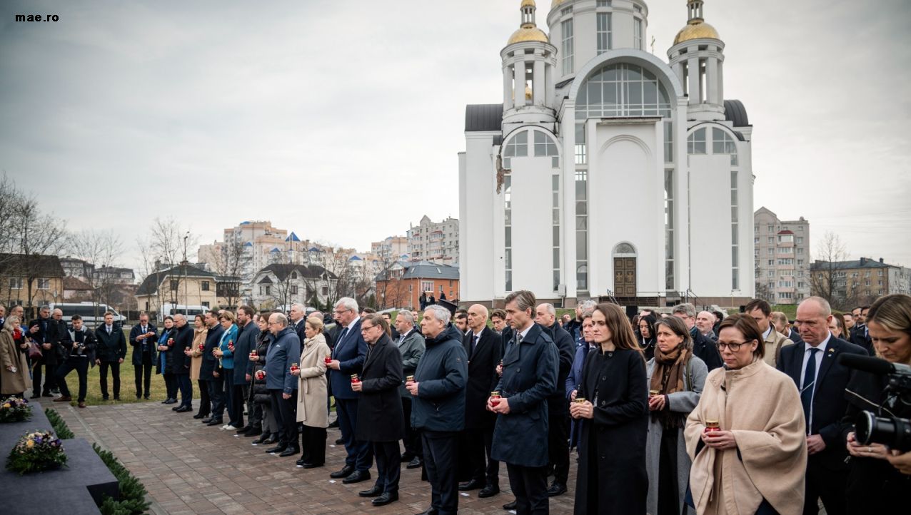 Although overshadowed by the new Middle East conflict and its global economic fallout, the Russian invasion of Ukraine, now in its 5th year, continues to horrify the world. Two Romanian officials, namely, Senate Speaker Mircea Abrudean and Foreign Minister Oana Ţoiu, travelled to Kyiv on Tuesday, to honor the victims of the massacre committed by invaders in the city of Bucha at the beginning of the conflict, and to once more condemn the Russian Federation’s illegal, unprovoked and unjustified war of aggression against Ukraine. “Alongside Ukraine’s President, Volodymyr Zelenskky, parliament speakers and heads of parliamentary delegations from Albania, Austria, Belgium, Bulgaria, Croatia, Estonia, Finland, Germany, Iceland, Latvia, Lithuania, the Republic of Moldova, Poland, Portugal, Slovakia, Ukraine, the United Kingdom, the European Parliament, the NATO Parliamentary Assembly and the OSCE Parliamentary Assembly, we reiterate our unwavering commitment to the principles of the UN Charter and our full support for the sovereignty, political independence and territorial integrity of Ukraine, within its internationally recognized borders “, Mircea Abrudean said in a Facebook post.