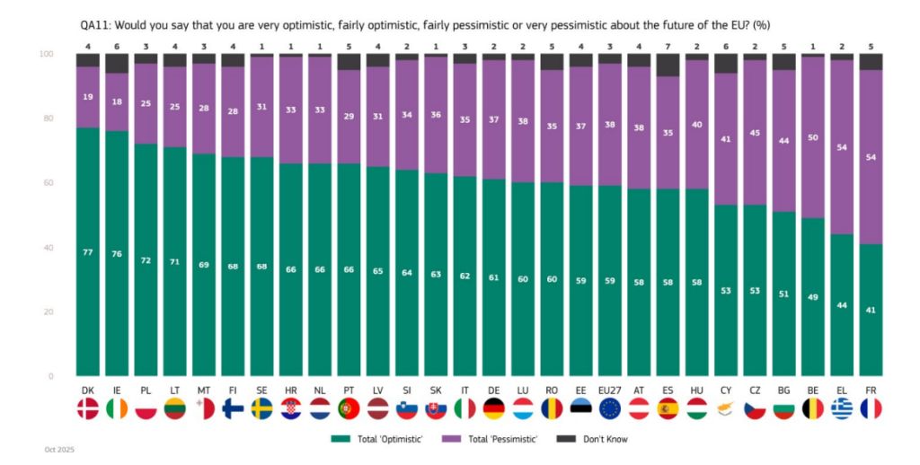 Sondajul Eurobarometrul de toamnă a fost realizat între 9 octombrie și 5 noiembrie. Peste 26.000 de cetățeni din cele 27 de state membre au fost intervievați față în față. Au fost realizate interviuri și în nouă țări candidate sau potențial candidate (cu excepția Ucrainei), precum și în Marea Britanie.