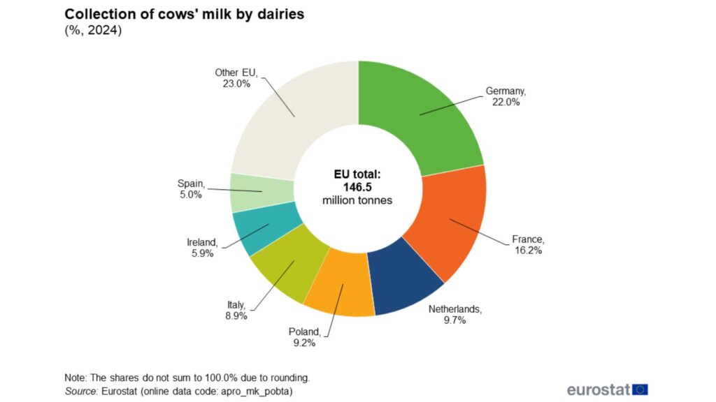 Statele UE cu cea mai mare producție de lapte crud / Infografic: Eurostat