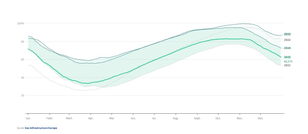 UE avea o capicatate de umplere a rezervelor de gaze de 62,5% în 2025 / Infografic: Consiliul European