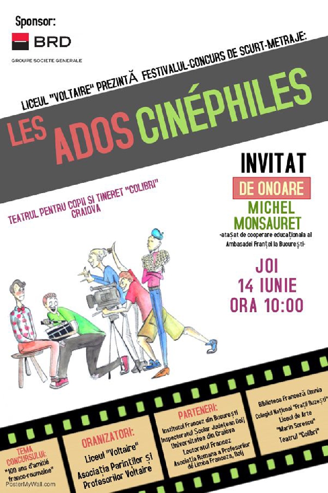Comme vous le savez peut-être déjà, avec neuf écrans pour la centaine de milliers d’habitants, la France détient le premier parc cinématographique d’Europe. Et puis ce n’est pas tout : le public français remporte haut la main la palme du plus assidu d’Europe. Les chiffres parlent d’eux-mêmes : 3,3 entrées par habitant et par an en moyenne. Rien qu’en 2016, les statistiques ont fait état de 213 millions de tickets vendus, selon une enquête menée par Le Monde. Du coup, on ne saurait nous étonner que pour célébrer cent ans d’amitié franco- roumaine, un lycée de Roumanie a choisi de le faire à travers un festival de court- métrages. Des détails tout de suite !