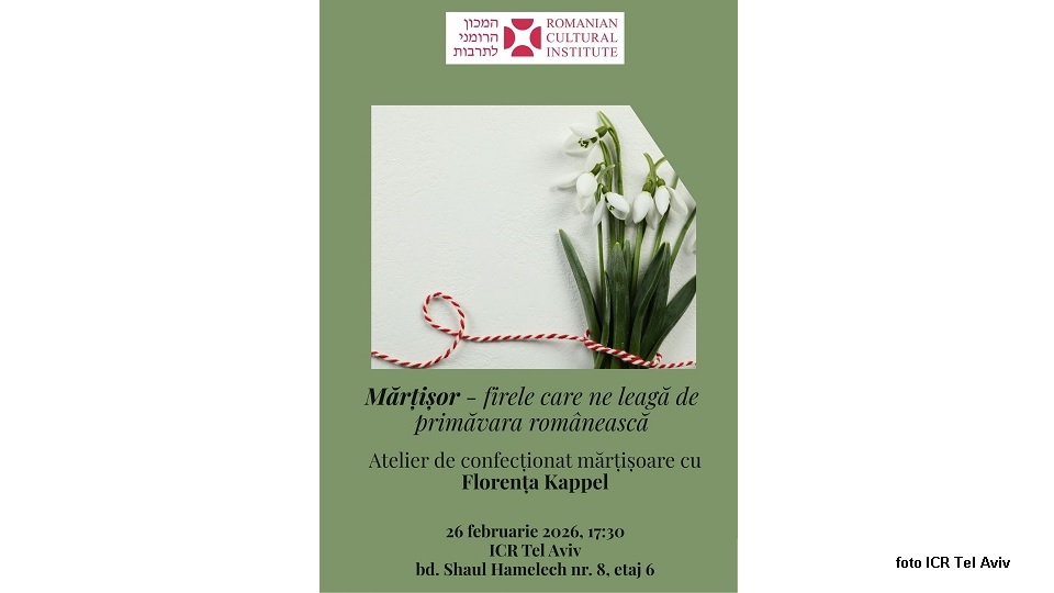 ב־26 בפברואר, הסדנה "מרצישור – החוטים שמקשרים אותנו לאביב הרומני" תהיה פתוחה לכל הגילאים – ילדים, מתבגרים, צעירים ומבוגרים כאחד. נשמח לראות כמה שיותר ילדים שמעוניינים לגלות את המסורת הקסומה הזו, מסר המכון.