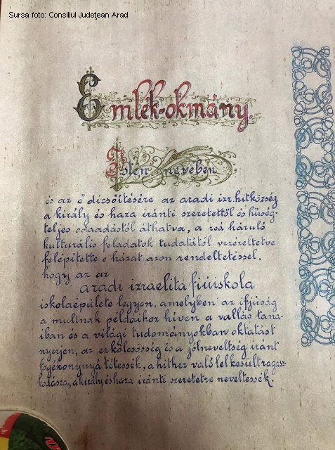 למסמך יש ערך מיוחד להיסטוריה של אזור זה של אירופה, מכיוון שהוא מתאר, החל משנת 1823, את המאמצים שעשו יהודי ערד כדי לבנות ולתחזק את בית הספר היהודי בעיר.