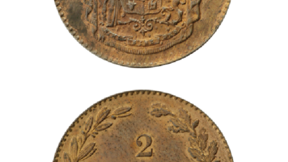 La moneta romena da 2 centesimi, coniata nel 1867, ha un diametro di 20 mm, pesa due grammi e contiene il 95% di rame, il 4% di stagno e l'1% di zinco.