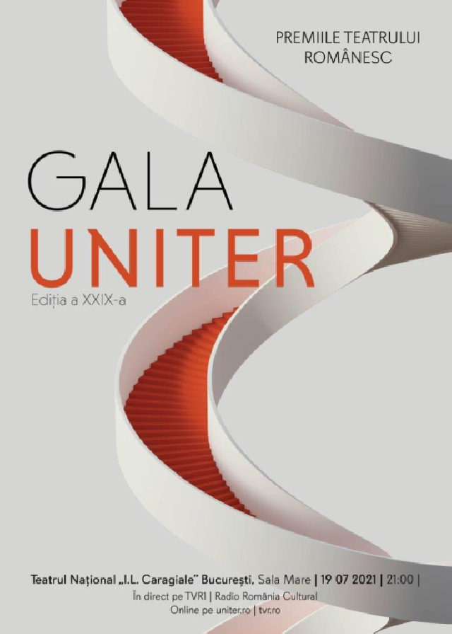 Cu bucurie și entuziasm vă invităm să urmăriți gala de acordare a premiilor pentru cele mai bune creații din teatrul românesc, luni, 19 iulie de la ora 21.00, în direct pe TVR1, Radio România Cultural și online pe www.uniter.ro și www.tvr.ro., transmite UNITER, într-un comunicat de presă.