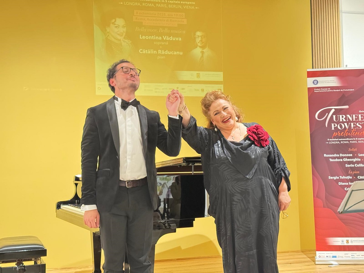 Soprana Leontina Văduva, după recitalul de la Roma: „Publicul român din diaspora are o sensibilitate aparte. Este o bucurie și o responsabilitate să le aduci, prin muzică, o parte din acasă. M-am bucurat enorm să cânt la Roma, unde, o să râdeți, am cântat pentru prima dată în toată cariera mea.”