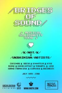 Румунський музикант Валеріу Боркош (член гурту K not K) нещодавно завершив у Бухаресті музичний тур солідарності з Україною. ” Bridges of Sound/Мости звуку – тур солідарності з Україною”, який розпочався в Кишиневі, продовжився концертами в дев’яти містах України і завершився винятковим концертом у повному складі гурту K not K, разом з Адуардом Габією, у приміщені Французького інституту культури в Румунії.