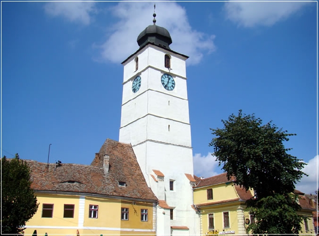 市议会塔是锡比乌市最著名的旅游景观之一。其名称来自第二道城门的防御工事,1324年的文件记载了锡比乌市议会附近的这座防御塔。当今的建筑物是分几个阶段建成,被加高并有附加建筑物群。原初的建筑物直到整个建筑的第二层。